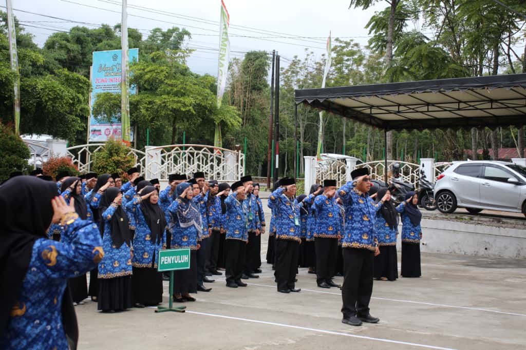 Pada kesempatan ini, Kasi Madrasah H. Dafrisman, S.Pd., M.Pd.I, selaku Plh. Kepala Kantor bertugas sebagai Pembina Upacara. Dalam amanatnya, ia menyampaikan tiga pesan penting yang perlu menjadi perhatian seluruh ASN sebagai penguatan etos kerja dan integritas.