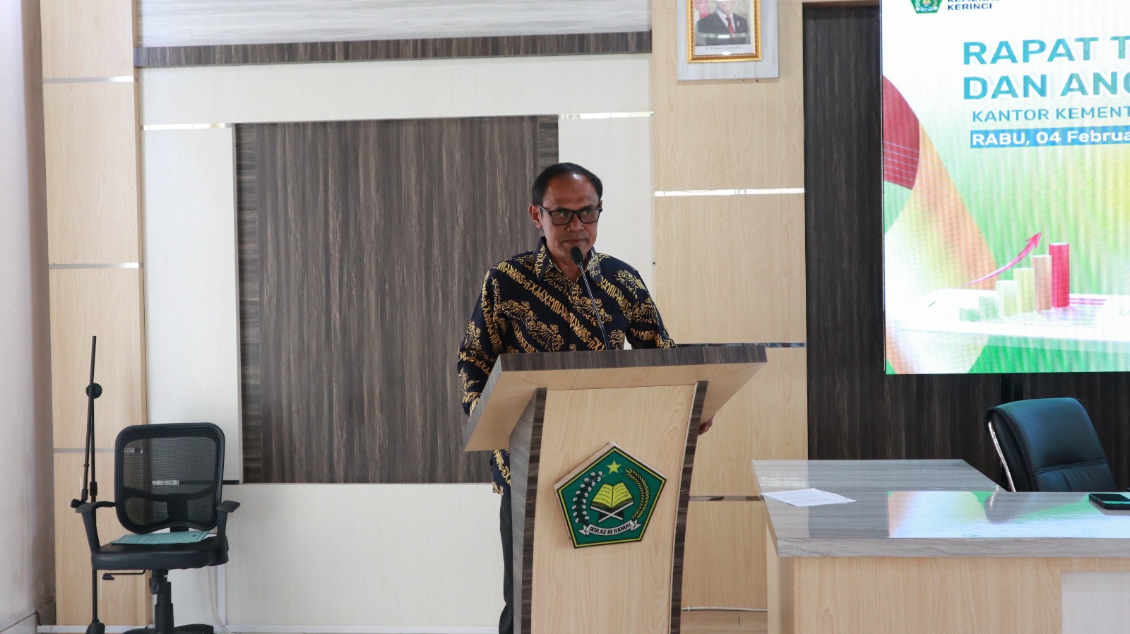 Kerinci (Kemenag) — Kantor Kementerian Agama Kabupaten Kerinci menggelar Rapat Telaah Program dan Anggaran Tahun 2026, Rabu (4/2/2026), di Aula Kankemenag Kerinci. Kegiatan ini dibuka langsung oleh Kepala Kantor, H. Pahrizal, S.Ag., M.M., dan diikuti oleh Kasubbag Tata Usaha, Kepala Seksi dan Penyelenggara Zawa, Koordinator Kepegawaian, Koordinator Keuangan, Koordinator Umum, Bendahara, Operator, PPABP serta tim keuangan.