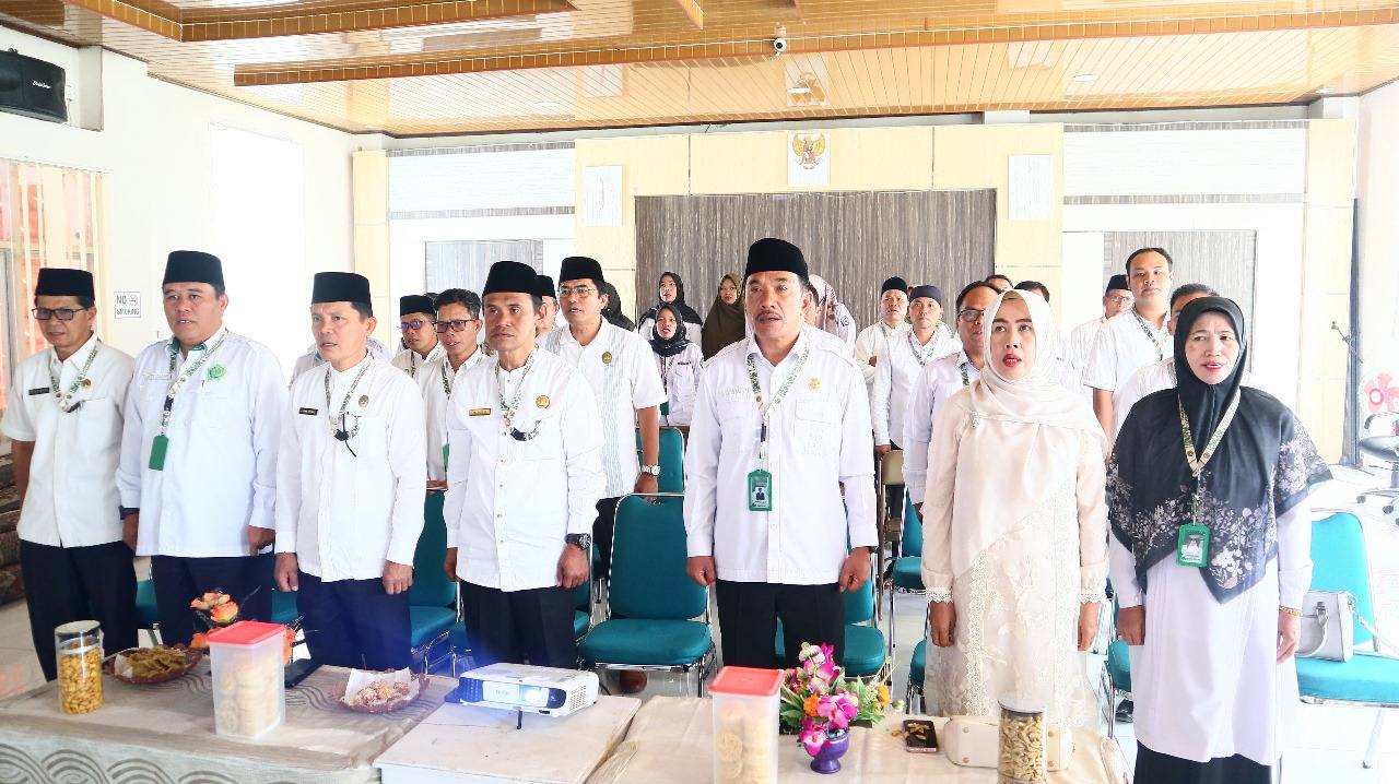 Kepala Kantor Kementerian Agama Kabupaten Kerinci, H. Pahrizal, S.Ag., MM bersama seluruh jajaran dan Aparatur Sipil Negara (ASN) di lingkungan Kemenag Kabupaten Kerinci mengikuti acara Halal Bihalal Kementerian Agama RI yang diselenggarakan secara virtual (Metting Zoom) di Aula Pusat Layanan Haji dan Umroh Terpadu.